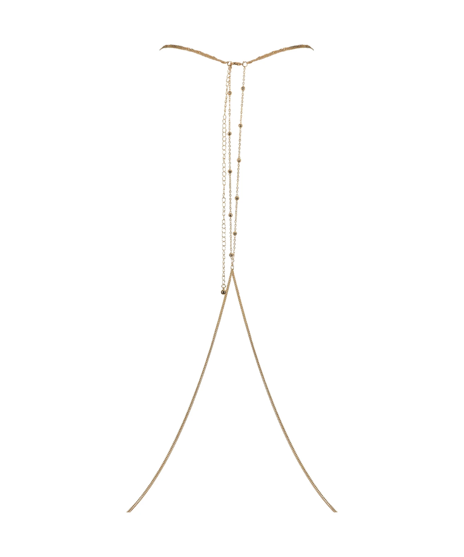 Vervollständige Deinen Look mit dieser schönen Body Chain. Sie ist goldfarben und macht Dein Outfit zum Hingucker.